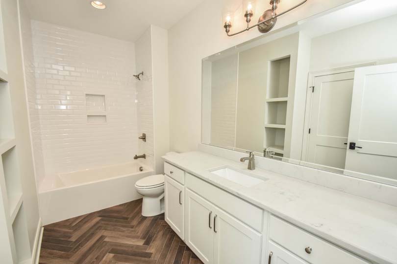 This beautiful custom home in Farragut’s Bridgemore Community showcases traditional architectural features with modern finishes and materials. The white brick and natural stone exterior provide tremendous curb appeal, while warm wood tones, elegant custom cabinetry, and picture windows bring the home’s interior to life. The simple and fresh color palette is complimented by plenty of statement lighting, texture, and custom tile designs.